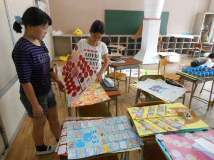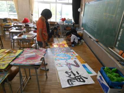 児童会は、スローガンを貼り合わせたり、めあてのポスターを集めたりしていました。