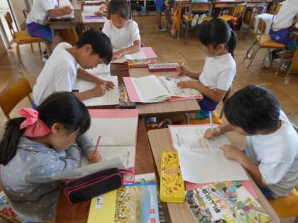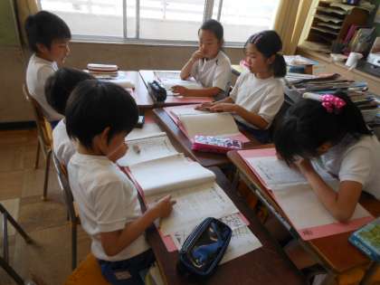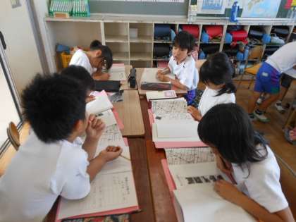 班ごとに校区探検の計画を立てました。効率良く回るためにはどこから行くといいのか、班長を中心に話し合いました。