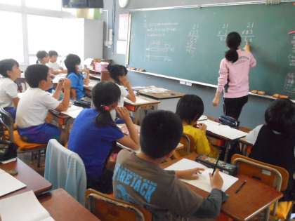 ペンキ1リットル当たり何平方メートルぬれるかというのをヒントにして、小数で表すペンキの量だと、どれくらいの広さがぬれるのか、求め方を考えました。