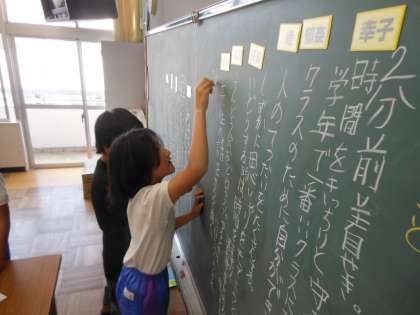 より良いクラスにするために、学級のルールを考えました。・がんばること。・やってはいけないこと。みんなの考えを出し合いました。