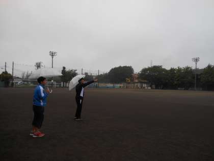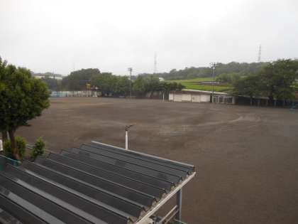 グラウンド状態を確認した先生の話では、「水たまりはないけど、ぬかるんでいるところがあって…。雨が上がっても、すぐには練習できないなぁ。」とのことでした。