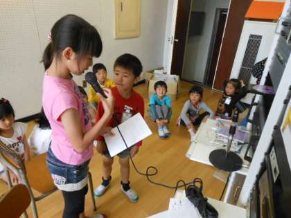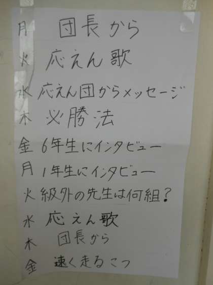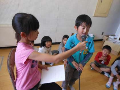 「ダンスや玉入れの練習は、どうですか?」と言う問いかけに「楽しいです。」と答えたり、「個人走は勝てそうですか?」と聞かれて「勝てそうです。」と答えたりしていまた。