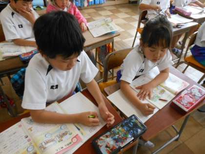 自分がその時刻に何をしているか考えながら、一日は何時間あるか、午前と午後などを学びました。