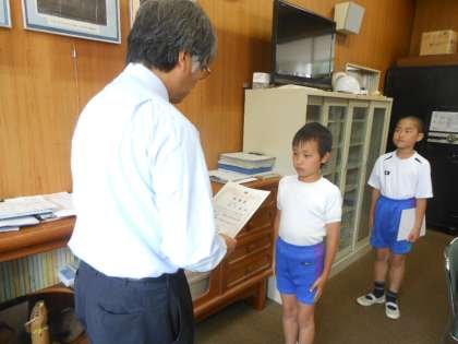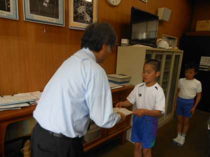 今年度の5年生愛鷹賞第1号は、学級のみんなに時刻を守るように呼びかけている児童と牛乳パックのかたづけを毎日ボランティアで続けている「たすけあう心の温かな」ふたりの男子児童です。愛鷹小には温かな児童が増えてきています。