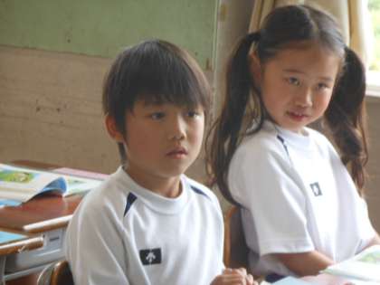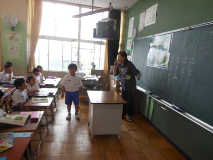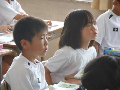 アヒル、カエル、カタツムリの表情に注目しながらお話を考えていました。