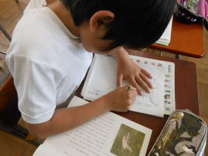 あめんぼが、浮いたり水面の上を走ったりする仕組みを図に表しました。