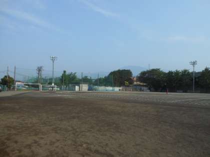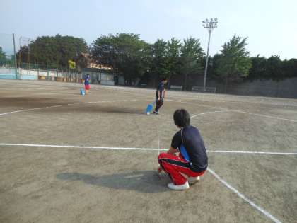 早朝から、先生方が運動場にラインを引いて準備を進めています。