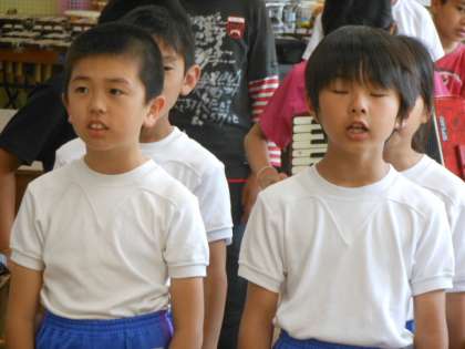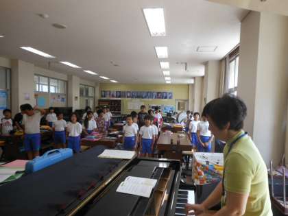 「今月の歌(運動会応援歌)」と一輪の赤い花 5年・音楽