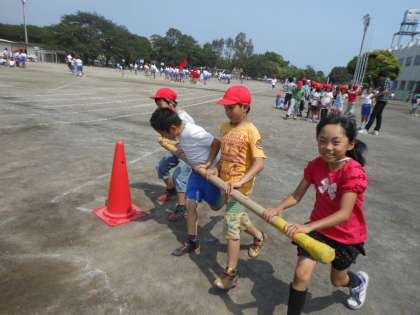 運動会まで、あと2日。休み時間の運動場では、団体競技の練習が行われていました。