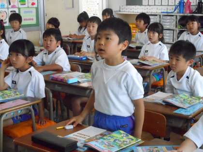 たくさんの子どもたちが元気よく手を挙げました。