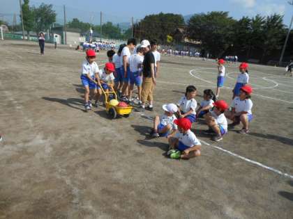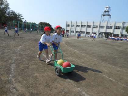 2年生は、ふしぎなたまご…の練習です。二人で息を合わせて押すのが難しいようです。
