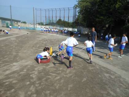 5月24日(金)の朝の愛鷹小学校 6 『4年生はタイヤリレー』