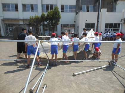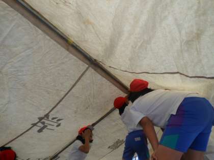 テントを張ったり、グラウンドをならしたりしました。