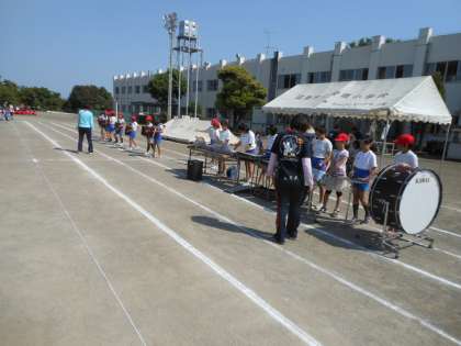 音楽係も、応援歌などの伴奏を実際の場所でやってみました。