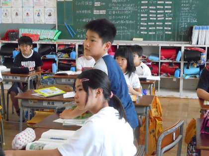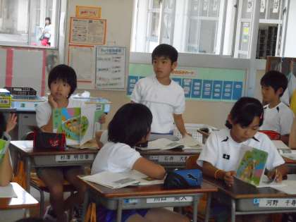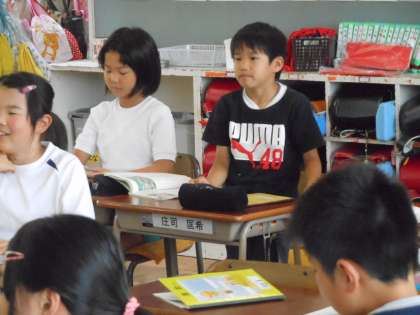 筆者の考えに対する自分の考えを発表し、自然や環境を守るためにどんなことができるか、話し合いました。