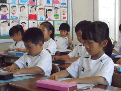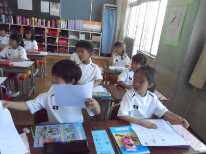 最初に、お手本の文字を指でなぞってから鉛筆で書きました。