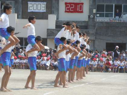 いよいよ、5・6年生による組体操『ぼくたちの世界旅行』です。