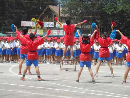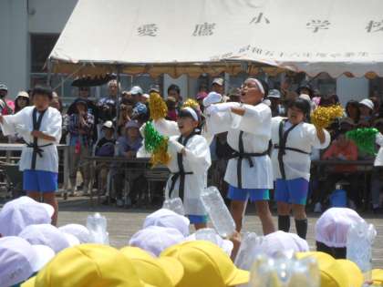 午前の部の得点が発表され、2210点とリードした紅組はこの勢いでさらに突き放すために、2003点の白組は巻き返しを図るために、応援合戦が繰り広げられました。