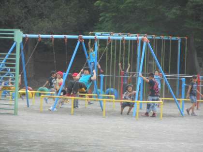 先週までは『運動会一色』でしたが、今朝は遊具で遊んだり、ドッジボールで遊んだりする子どもの姿が見られました。
