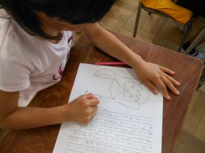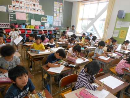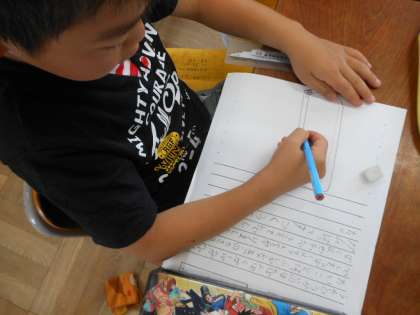 先日の運動会の作文を書きました。個人走・ダンス・団体競技・応援と、みんな思い出はそれぞれ。きれいな絵を添えて完成です。