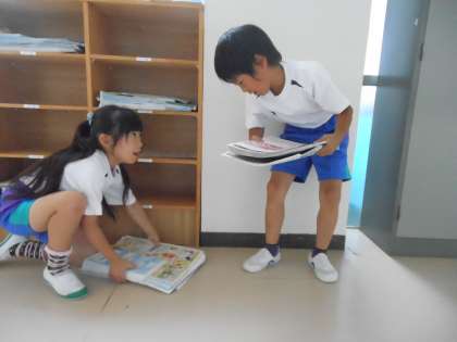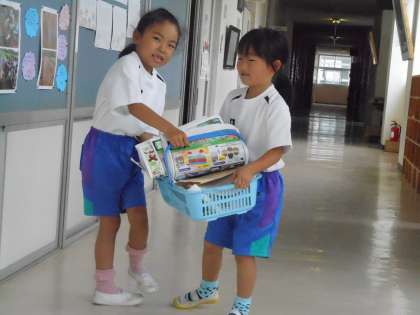 今朝もたくさんの配付物を1年生がなかよくがんばって運んでいます。