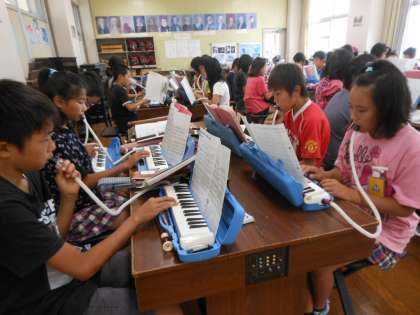 ラバースコンチェルトの練習も大詰めです。最初に全員で主旋律と飾りの旋律を交代しながらリコーダーとメロディオンで演奏しました。その後グループ練習をしました。