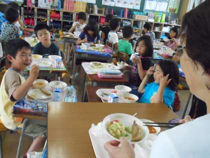 今日の給食クラス訪問も2年生の教室です。子どもたちと楽しい時間が過ごせていました。