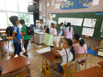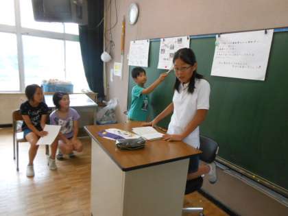 今日はいよいよ「交通安全を語る会」です。最終準備、リハーサルをして、発表に臨みます。聞いてくれる人に、分かりやすく伝えられるように工夫しました。