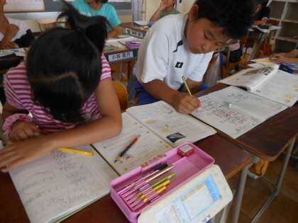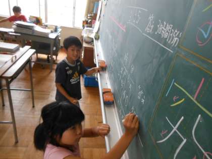 時間の計算を、筆算でしています。引き算の時に、1時間からくり下がるのは60分だということがわかってきました。