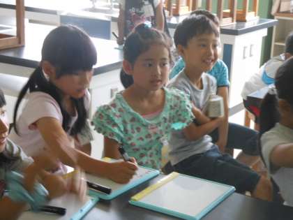 チョウの体のつくりを、テレビを見ながら学習しました。