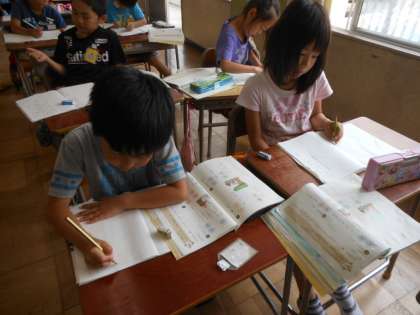 上から下へ書くかん字や左から右へかくかん字をたくさん見つけました。