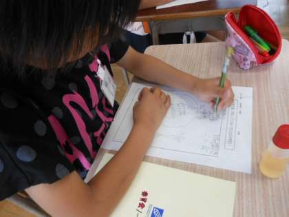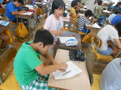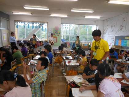 昨日の活動について、どんな先人の知恵や工夫があるのかを話し合いながら記録をしました。何気なくやっているように見えた作業も、みんなで考えていくと意味があることが分かり、感心する場面もありました。