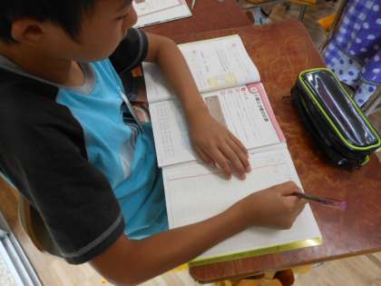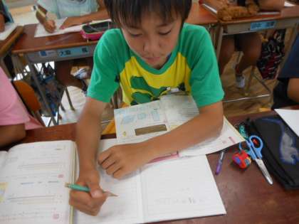 式を立てることは簡単にできました。「小数の足し算引き算は小数点をそろえる」などの決まりを思い出して押さえながら計算していきました。黙々と計算していました。