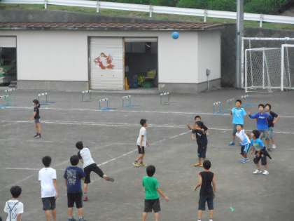 登校してくてきた子どもたちは、今日も元気に運動場で遊んでいました。