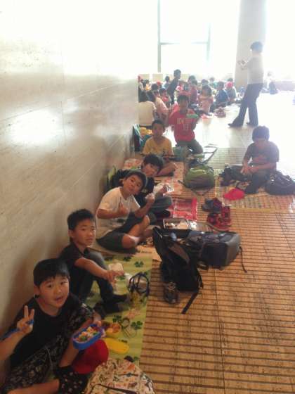 お家の人が作ってくれたお弁当をみんな美味しいく食べています。今のところ雨に降られる事なく見学がすすんでいます。