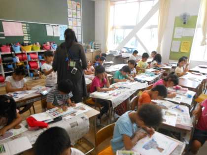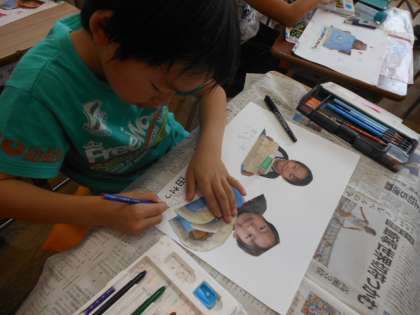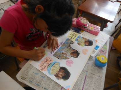 ねん土の作品の写真を掲示するために、レイアウトを考え、さらにデコレーションも加え、まとめました。