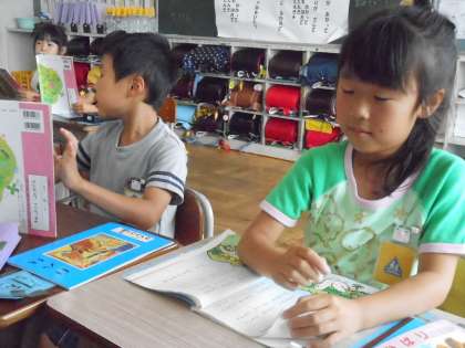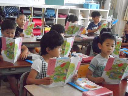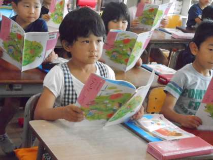 全員で、グループごと、ひとりずつ・・・いろいろな読み方で音読をしています。