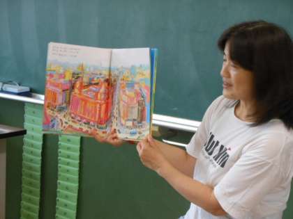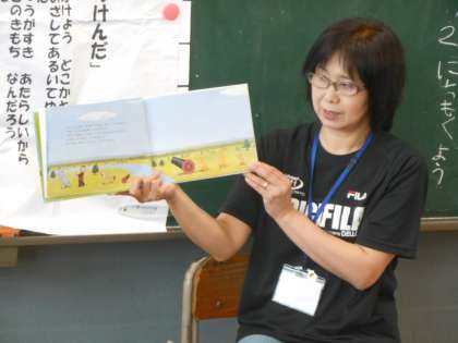 読み聞かせボランティアの方のお話で、子どもたちを絵本の世界へ引き込まれていきます。