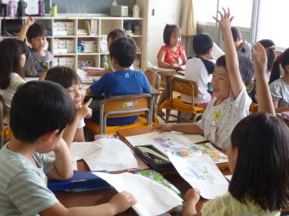 一人一人が学校たんけんクイズを作り、グループでクイズ大会を開きました。