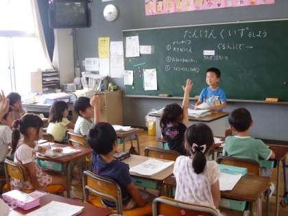 グループでクイズ大会をした後に、クラスのみんなで全国大会を開いて、学校のひみつがたくさん見つかりました。
