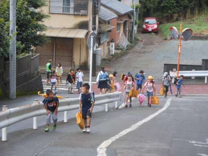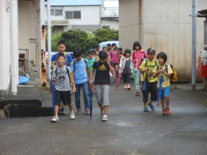 3年生は、プールバッグを持っています。「今日、水泳ができるかなぁ…。」と心配そうでした。