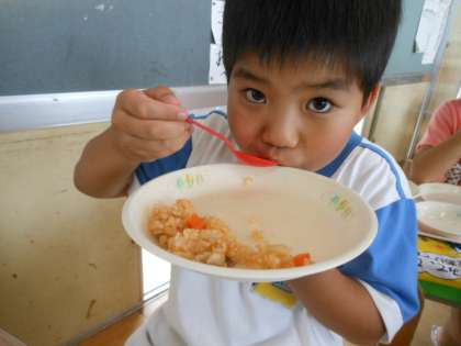 おいしい給食を、もりもり食べています。