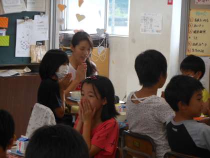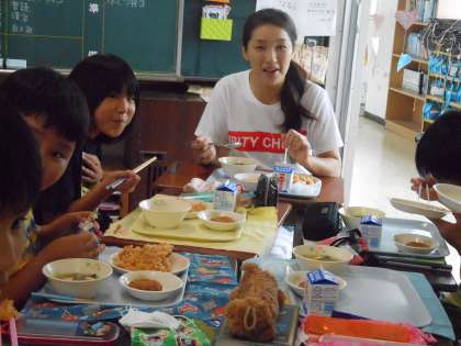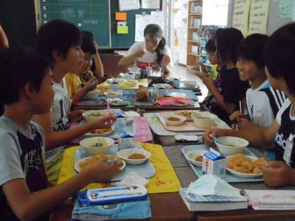 調理員さんと楽しく談笑しながら、おいしい給食を食べました。