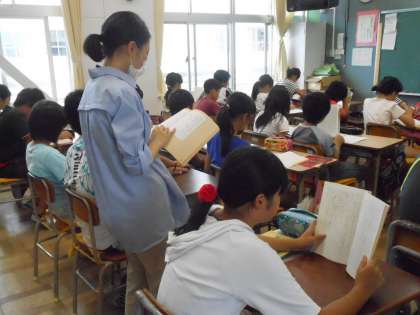 物語文の「注文の多い料理店」を、すらすらと音読練習できるように、○読み(句点で区切って、一人一文を読む。)練習をしました。 目新しい言葉に着目して、わからない言葉には、読み仮名をつけながら読みました。