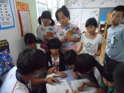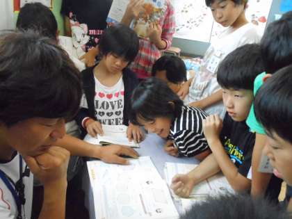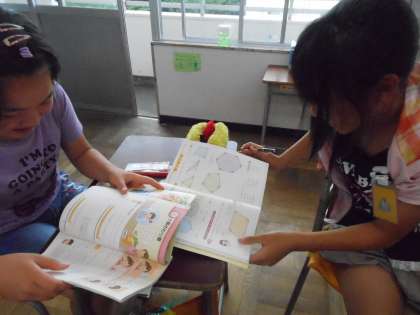 平行四辺形の向かい合う角が等しいことを、合同の性質を使って証明する問題に取り組みました。分かっていることを一つずつ積み重ねていって証明する方法を学びました。