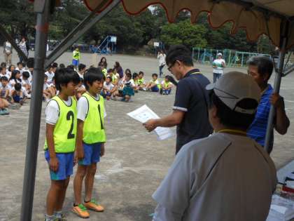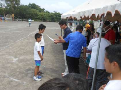 1〜3位までの表彰が行われ、各チームのキャプテンと副キャプテンにPTA会長さんから賞状とトロフィーが手渡されました。