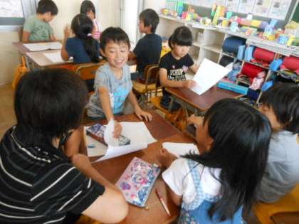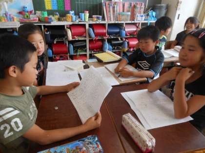 原稿を元に、班でスピーチ大会の練習をしました。お互いのスピーチを聞き、さらにいい原稿になるようにアドバイスしました。
