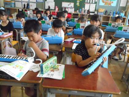 今日はメロディオンで「かえるのがっしょう」をれんしゅうしました。