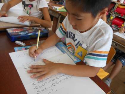 視写をはじめると、とても集中してきれいな字で書くことができていました。