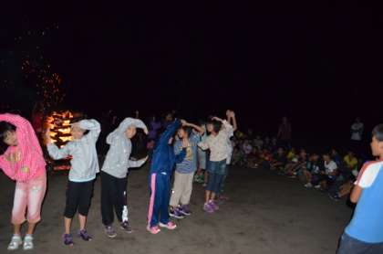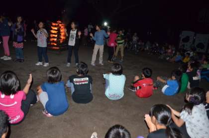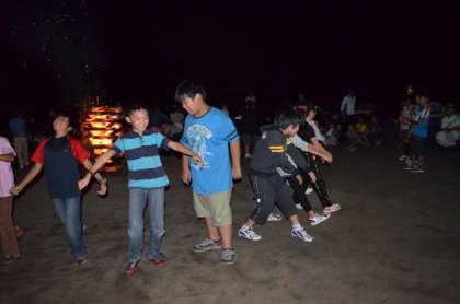 飯ごう炊さんのあと、クラスごとにお題(出し物のテーマ)が出され、クラスで話し合って練習しました。